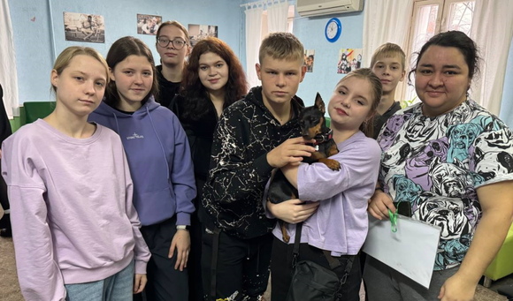 Прямо с утра, покричав поздравления и потянув именинника за уши, отправились в офис на встречу с кинологом Алисой и ее собачкой Шелли. Алиса долго и увлекательно рассказывала об особенностях работы с животными, о правилах безопасности, о смысле работы. Шелли крутилась рядышком и присматривалась к ребятам. Конечно же ребятам разрешили погладить и потискать собачку. И это понравилось всем участникам процесса.