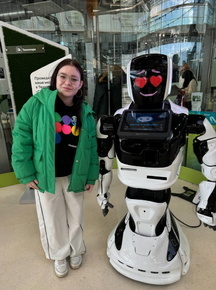 Уже у самого входа начались чудеса – встречал ребят робот, с которым можно и пофотографироваться, и поговорить. Там же на входе ребят встретил экскурсовод, который и провел по всевозможным коридорам и отделам Города Будущего. Чего только не встретили там! И инженерные лаборатории, и цех, в котором юные воспитанники центра Сколково участвуют в создании элементов космических аппаратов. Наших участников невероятно восхитило, что то, что создавали их ровесники, уже прикручено к аппарату и бороздит бесконечность! Многие внезапно захотели изучать физику и становиться айтишниками. Похихикали около аппарата «робот варит кофе» и сфотографировались под местной достопримечательностью «Кнопка» – огромной цилиндрической блестящей выпуклостью на потолке.