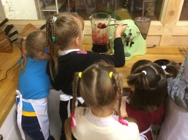 Так и поехали снова в парк Горького, но на этот раз не гулять, а в «Зеленую школу». Два часа в школе получились очень насыщенными – ребята сами сделали домашний лимонад, причем все шаги полностью выполнили сами – и почистили лимоны, и сок отжали, и мяту разделили, и сделали пюре из клубники. Даже в кружки наливали сами. Немного отдохнув, отправились в живой уголок, где до этого уже успели пообщаться с кроликами, попугаями и черепахами, чтобы посадить свое собственное растение для школы.