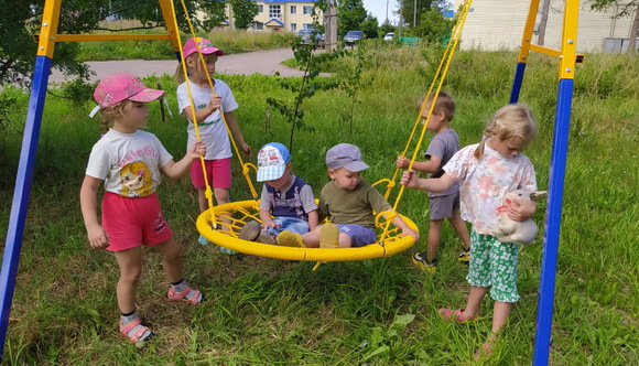 Благодаря вашим пожертвованиям в июле в поселке появились качели. Лариса Кононыхина, руководитель клуба, пишет: