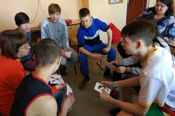 Апрельское занятие цикла «Три Да» в Нижегородской школе-интернате началось с неожиданности: ребята, которые обычно приходят на наши встречи, оказались в этот день заняты. Но нет худа без добра: к нам пришли «новенькие». Довольно быстро ребята поняли, что скучно не будет – наоборот, будем играть!