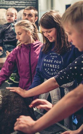 Еще одной миссией ребят было найти Палеонтологический музей. Ребята пока ориентируются по названию улиц и номерам домов, спрашивать прохожих пока стесняются. На экскурсии больше всего запомнился тираннозавр Рекс и мамонтенок Дима, которого, кажется, любят вообще все ребята, побывавшие в музее.