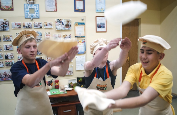 После поехали готовить в компанию «ПиццаСушиВок». Каждый участник сделал свою уникальную пиццу. Ребятам предлагались готовые классические рецепты, но ингредиентов было так много, и они столь аппетитно выглядели, что фантазия у наших юных поваров разыгралась, и пиццы получились уникальными по «авторским» рецептам. С нетерпением ждали результаты и угощали друг друга.