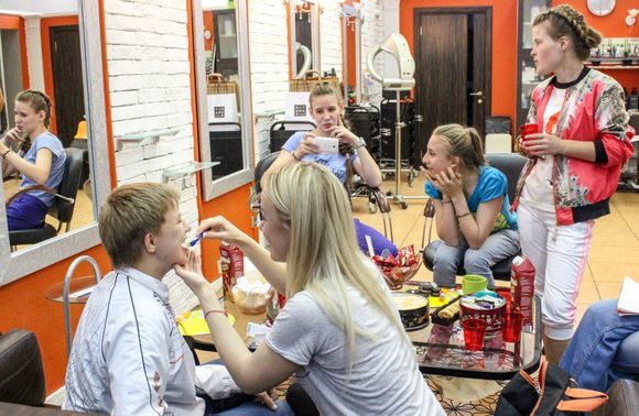 А девочки отправились в салон красоты «Оранжевая империя», где их встретила директор Ольга. Ольга рассказала девочкам о том, как сама когда-то выбирала профессию и что выбирать ее важно по зову сердца. Жанна показала, как делать украшения, и все девочки сделали себе очаровательные браслеты. Ирина показывала разные плетения кос, а девочки запоминали. Стоматолог-гигиенист Наталья показала девочкам, как правильно чистить зубы. Получив красивые щетки, девочки тут же попробовали новый способ чистки. Уходили очень довольные, заплетенные, в браслетах и с подарками! Благодарим салон красоты и Ольгу Журавлеву за возможность побывать в мире красоты!