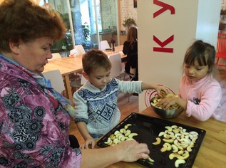 А дальше вернулись в парк, в Зелёную школу. Ребята сделали аппликацию «Ананас», посадили свои растения в горшочках, погладили кроликов, покормили попугайчиков и потом приготовили вместе с Лешей Шарлотку! Сами подкрепились тем, что приготовили, и поделились с хозяевами и гостями Зелёной школы.