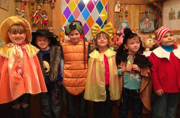 Нагулявшись и набрав полные карманы рекламы, пошли обедать в Шоколадницу. Нас, как всегда, вкусно и сытно накормили. А после поехали в сказочный музей Буратино-Пиноккио. Малышей снова ждали впечатления и чудеса! Встреча с настоящим Пиноккио и говорящей черепахой Тортиллой, которой они помогли достать Золотой ключик из пруда, посещение каморки папы Карло и домика Мальвины, где ребята узнали про письмо чернилами и немного поговорили про правила поведения за столом. А потом ребята сами превратились в героев сказки – перед нами появились говорящий сверчок, Лиса Алиса, пёс Артемон!