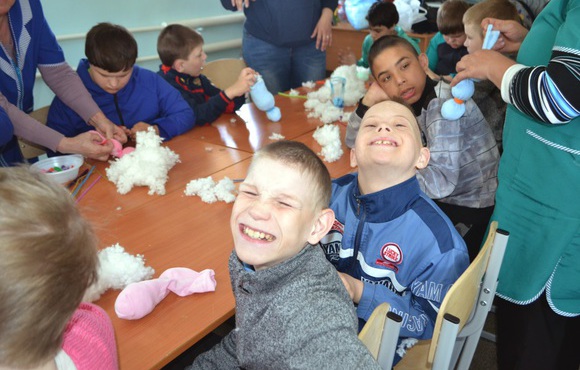 Впервые за время наших поездок в Елатьму, в творческом мастер-классе участвовали несколько ребят с тяжелыми нарушениями из отделения интенсивного ухода, и это очень здорово!