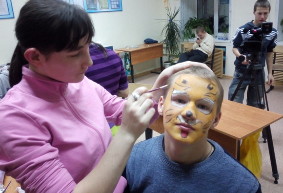 Когда уже все изобразили всех, кого только могли придумать, стали изучать искусство грима. Тренировались на листочках изображать зверей, бабочек и всякую нечисть. Лёша Ж. легко превращал нарисованные лица в разных героев. А вечером уже тренировались на лицах друг друга, и тут обе Марины с рвением взялись за дело. А Серёжа, Стас и Дима учились в это время работать с камерой, ходили и снимали то, что им казалось интересным. К концу дня Витя придумал заставку к фильму.
