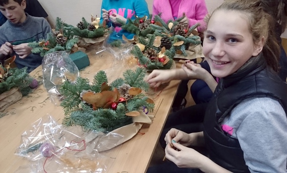 Знакомство плавно перетекло в мастер-класс по флористике, проведенный наставницей Олесей. Он получился по-настоящему теплым и новогодним - ребята собирали красивые композиции из сосновых веточек, шишек, роз и украшений.