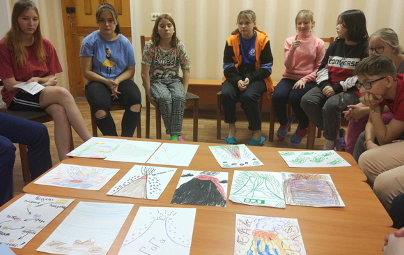 Во второй день взялись за злость. Обсуждали все названия: от бешенства до раздражения, лепили из пластилина свою злость и выяснили, что у всех она разная – и по цвету, и по форме. Нарисовали свой эмоциональный мир в виде вулкана и рассказывали о том, что же получилось и как все по-разному «кипят» и «выплескиваются». Посмотрели также несколько картин известных художников, где изображены страх и злость, такие как «Баба-Яга» В. Васнецова, «Крик» Э. Мунка, «Геракл и гидра» Антонио дель Поллайоло, «Дедал и Икар» Я. П. Гови. Интересно было сравнивать как рисуют страх и как злость. Пробовали мимически изобразить. В завершении поговорили о том, как же лучше выражать и безопасно проживать свои непростые чувства. И как всегда пили чай с конфетами!