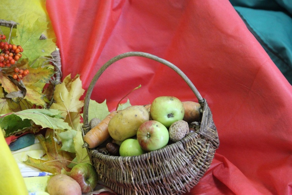 В этот раз нам пришлось Тетушке Осени рассказывать и показывать, какая она. Мы собирали листья, что разбросал Листопад, и вспоминали, какие есть осенние месяцы. Мы угадывали на ощупь, какими богатствами она славится - их нам принес щедрый Урожай. Непогода прилетела, тучи нагнала и дождь обрушился на нас! А потом мы показывали Тетушке Осени наши осенние хокку. Например, такие: