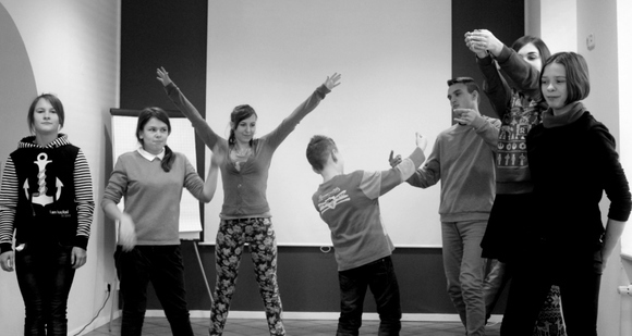 Актеров было шестеро, все одеты в черную одежду. Они предложили участникам рассказать свои интересные истории, которые случились с ребятами на программе, а актеры постараются их показать. Первым начал Виктор, рассказав о том, как стал участником циркового представления. Четверо актеров показывали истории ребят – это было так точно, с юмором, захватывающе и необычно, что ребята не могли оторваться. Всем очень понравилось! Спасибо актерам Playback Театра за возможность еще раз испытать эмоции с мероприятий программы.