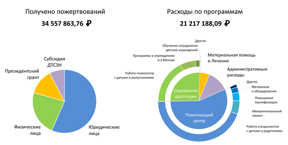 - В регулярных программах Социальной адаптации приняли участие 115 детей из 6 регионов, 19 человек участвовали в проекте «Поддержка выпускников». В Помогающем центре получили помощь 75 детей и 87 родителей и других родственников из 67 семей.