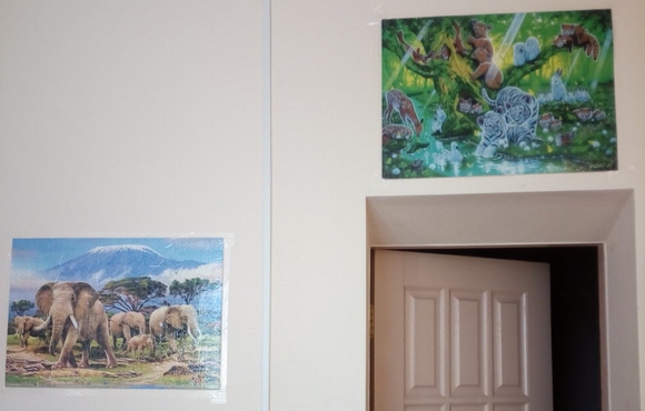 В комнате Жени на стенах собрана уже целая коллекция, а пазл из 1000 элементов Женя собирает за 1 день. Недавно мы передали ей пазл из 3000 деталей, и радости Жени не было предела! Это пока самый большой большой пазл, который есть у Жени.