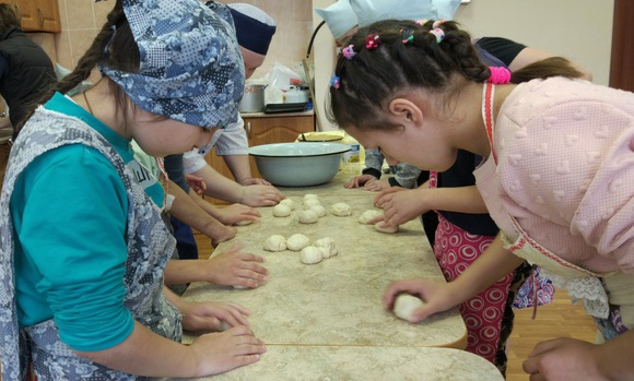 Младшим ребятам было сложно найти, где и что лежит, а когда разобрались, начали готовить. А что любят пираты? Выбрали окрошку и пироги с картошкой и мясом! Темп у маленьких пиратов не быстрый, поэтому еле успели к приходу гостей. Ведь так интересно было нарезать кубиками овощи для окрошки. А еще необычней – лепить пирожки! Сначала они получались рваные и кривые. Затем немного пригорели сверху, за что их назвали «Черная метка».