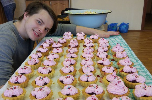 Ребятам очень хотелось сделать «Крабовый салат», и им понадобилась вся сила воли во время нарезания крабовых палочек, чтобы их не съесть. Поставили запекаться курицу и взялись за пирожные. Опытным путем Никита выяснил, что миксер надо сначала выключить, а потом достать из кастрюли – все вокруг было во взбитых сливках розового цвета. Украшать пирожные хотелось попробовать всем, поэтому узоры получились уникальные.