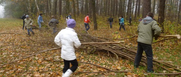 Но приблизиться к этому можно :) Вот уже четвёртый год в начале октября мы делаем ровно одно и то же - вывозим 20 детей из Новогуровского интерната в музей-усадьбу Поленово, чтобы приобщиться к культуре, помочь музею посильной работой и отдохнуть на берегу реки. В этот раз всё прошло как-то особенно спокойно и хорошо. Сначала мы чистили лес - работники парка гудели бензокосами и бензопилами, а дети, воспитатели и волонтёры собирали всё, что падало, и сносили на поляну. Не сказать, что трудились прям «все в едином порыве», но за полтора часа кучи натаскали большие, и ёлочки, которые сам Поленов сажал для своих детей, вышли из зарослей.