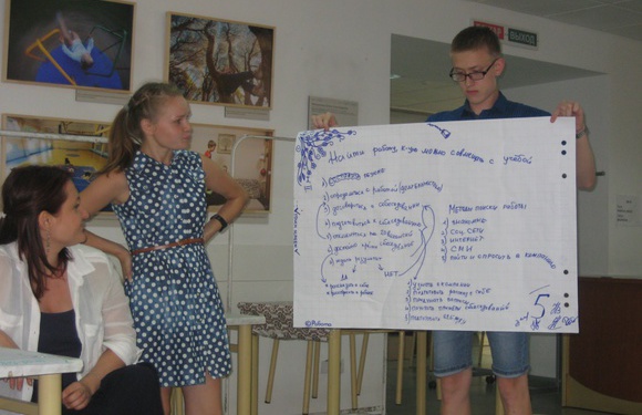 Добавим лишь, что на семинаре о методах поиска работы с Верой Игнаткиной наши участники выясняли, какие бывают критерии при выборе работы и какие наиболее важны для каждого из участников, изучали методы поиска работы, учились составлять резюме. А звонки реальным работодателям, о которых рассказывают ребята, действительно оказались для них очень трудными – сначала они пробовали найти подходящие для них вакансии в газете, после чего цель стояла позвонить и договориться о собеседовании, но кого-то подводило отсутствие опыта, кого-то страх телефонного интервью – зато все желающие получили первый опыт общения с реальными работодателями, и будем надеяться, что следующие их попытки будут все более удачными!