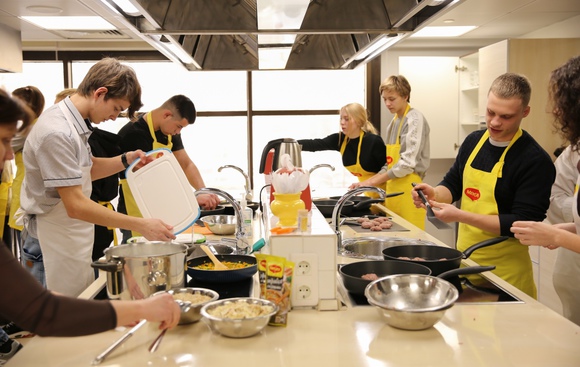 А само занятие проходило на территории компании Nestle, и после тренинга технолог компании рассказал о своей работе. Ребята открыли для себя много нового в вопросах приготовления пищи и даже узнали секрет! Как приготовить картошку фри как в Макдональдсе. Хрустящую и рассыпчатую. Финалом экскурсии было приготовление себе обеда, что поразило детей. Обилие вариантов и хитростей с использованием продуктов компании Nestle позволило приготовить из простых ингредиентов невероятно вкусный обед!