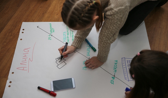 Сегодня Юлия Малинская – мастер по распределению времени – провела для ребят занятие по планированию. Ребята так загорелись этой темой, что в конце даже нарисовали, каждый на своем ватмане, план на пять лет вперед. Подробный и очень честный.