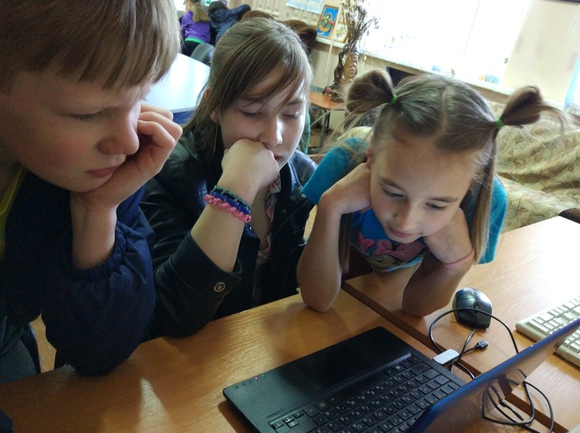 провели семинар по монтажу и пацаны засели за ноутбук. Соня, Таня, Ира и Аня в