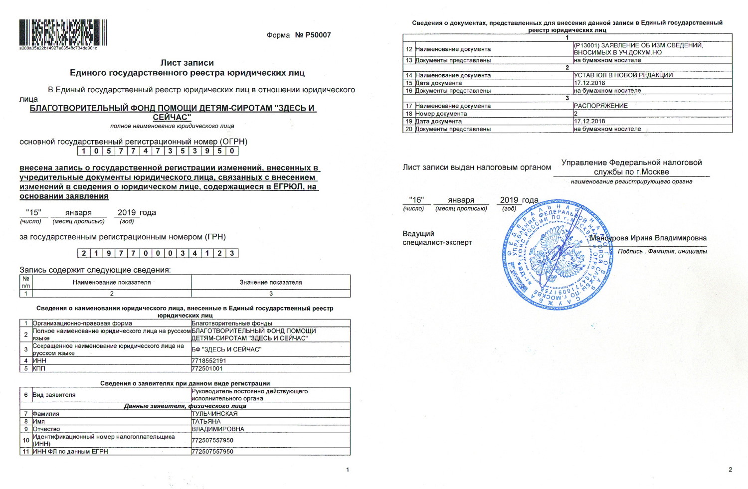 Дата выдачи - 16 января 2019 года