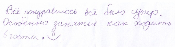 А утром мы все собрались в актовом зале. Познакомились с теми ребятами, которых не видели раньше, и, как всегда на этой программе, начали с обсуждения «Зачем люди ходят в гости?». Катя говорила, что ходят есть. Люба, Оксана и Сергей, что общаться. Ваня неожиданно предположил, что можно ходить в гости, чтобы решить вместе какую-нибудь проблему.